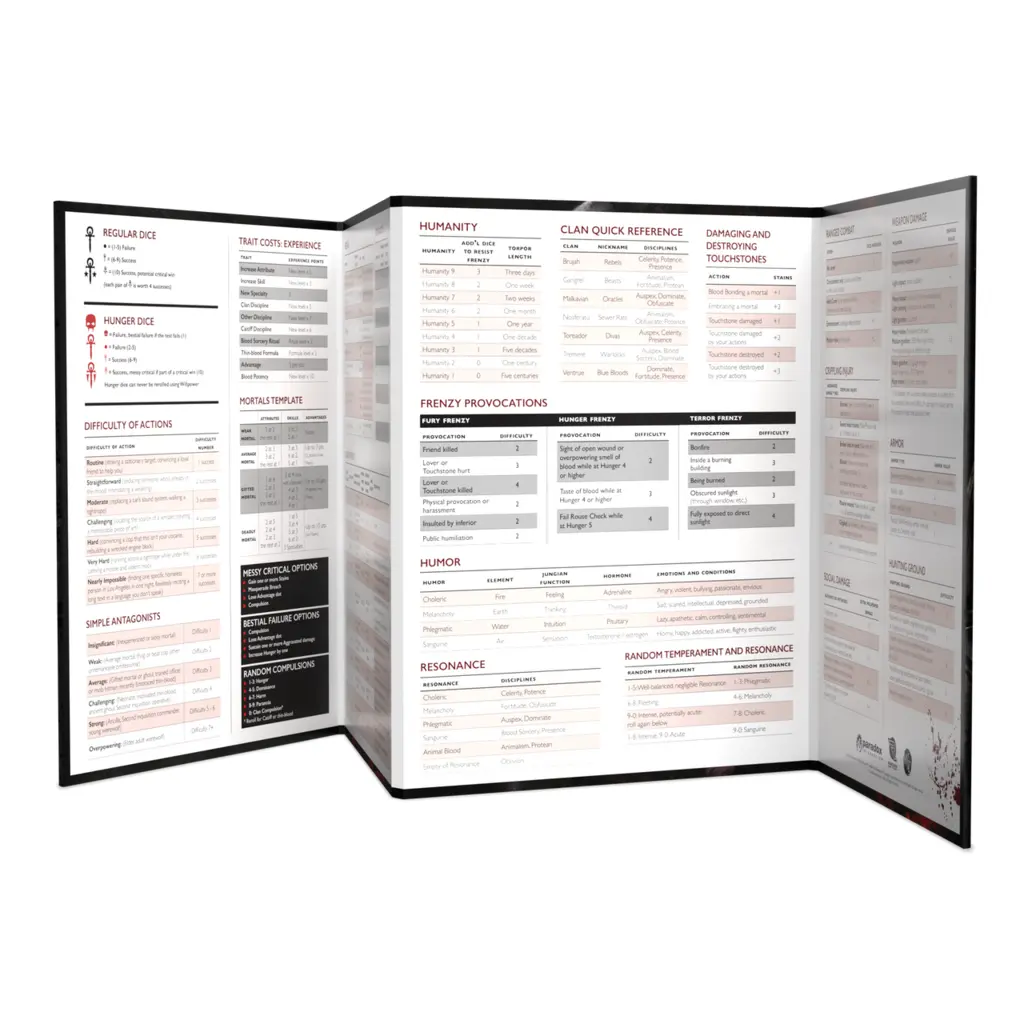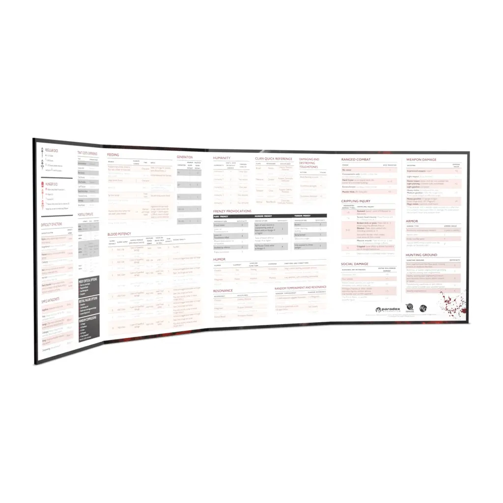 A high-quality official folding screen for the game "Vampires - The Masquerade" in vertical format, which contains a lot of useful information for your chronicle.