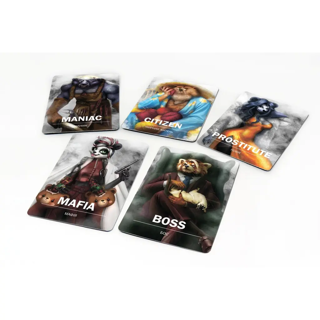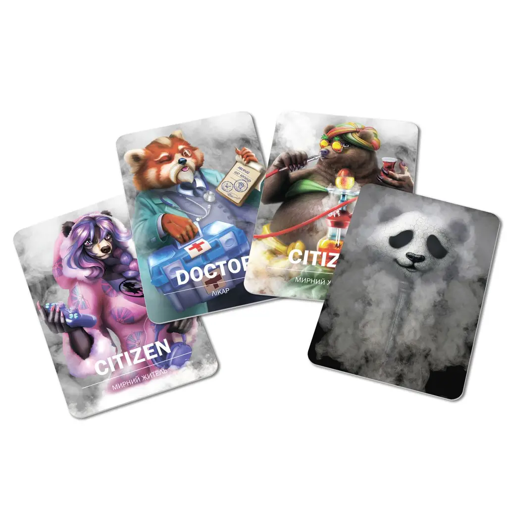 Гра пропонує 18 якісних ламінованих карт, які оформлені у яскраво-нуарному стилі. Трохи гламурні розніжені жителі будуть протистояти не менш цікавим ведмедям з мафії.